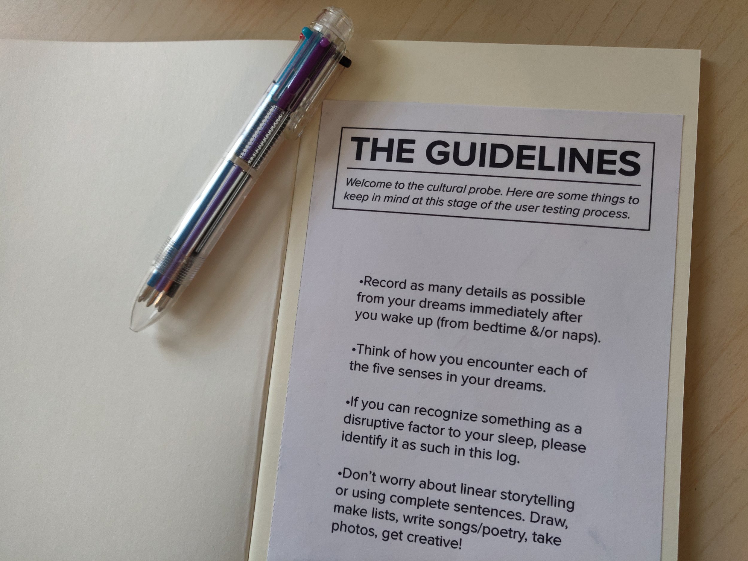 By using this design research technique, I was able to learn about real users’ sleep habits, dream recall, and sensory factors during sleep.